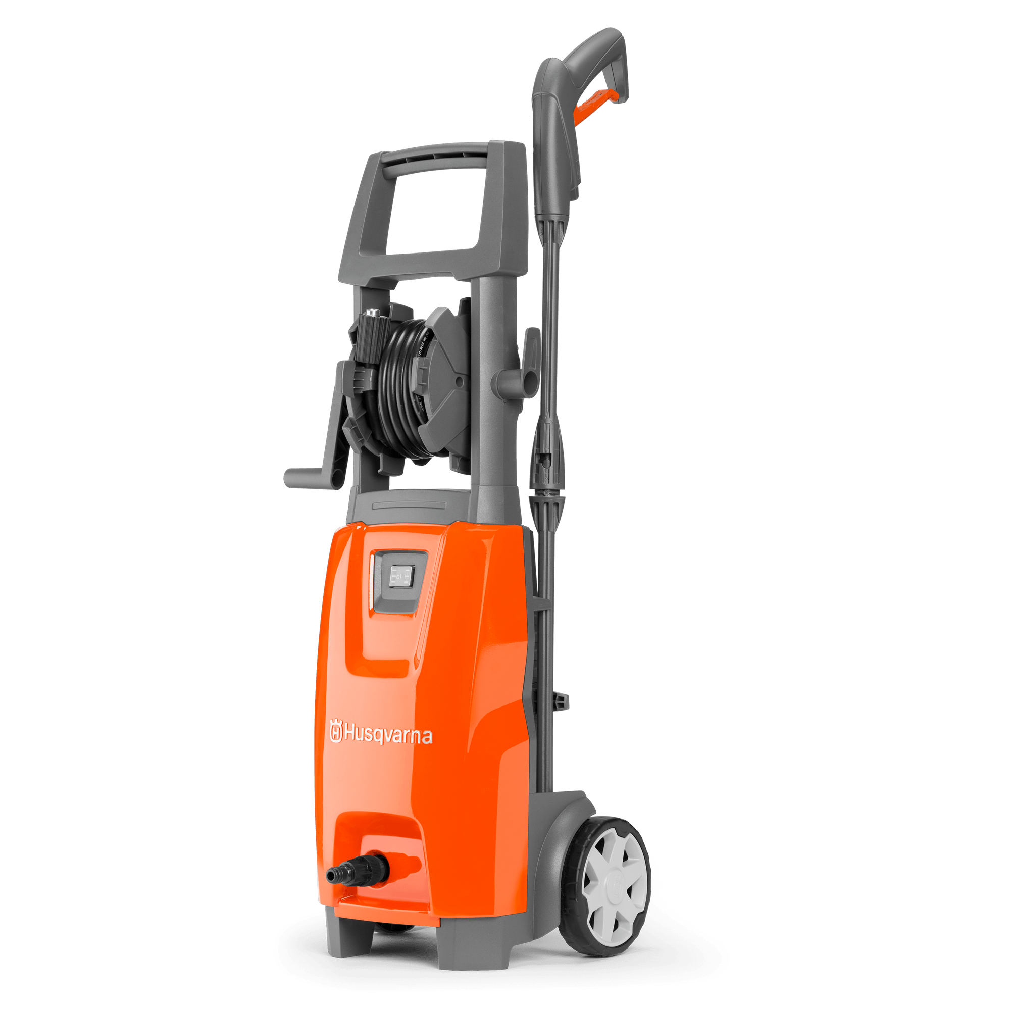 Vår mest kompakta högtryckstvätt lämpar sig utmärkt för att rengöra uteplatser och trädgårdsutrustning. Dubbla svivelfunktioner för justering av munstycket och snabb anslutning utan krångel. Inbyggt förvaringsutrymme för tillbehör, slangvinda och nätsladd gör arbetet effektivt. Metallpumpen ger tillförlitliga prestanda. Två munstycken och en skumspruta ingår.